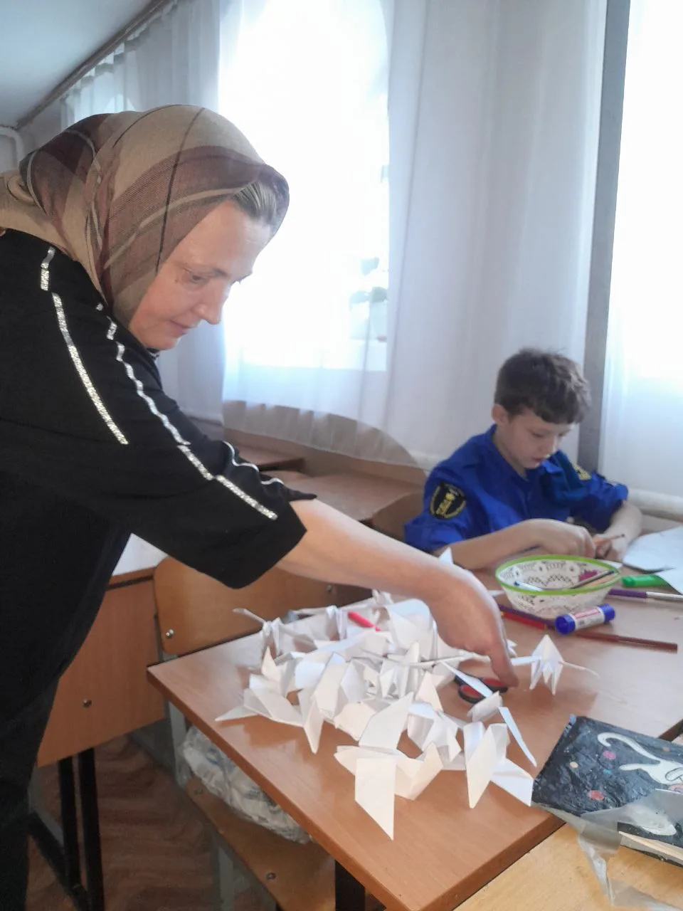 По благословению владыки Димитрия, ребята приняли участие в праздничной акции по изготовлению бумажных голубей и провели соревнование, кто сделает их больше.